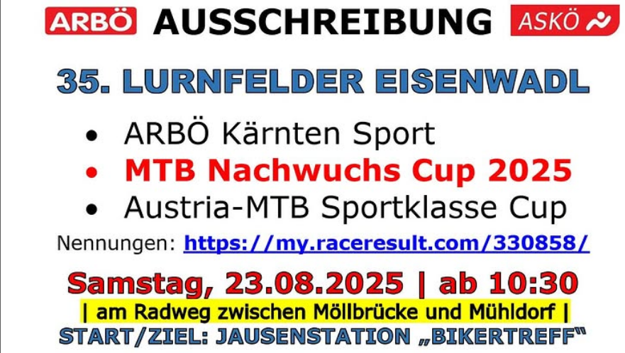 MTB Challenge 🚴♂️der Lurnfelder Eisenwadl 🚴 am Samstag, 23.08.2025!